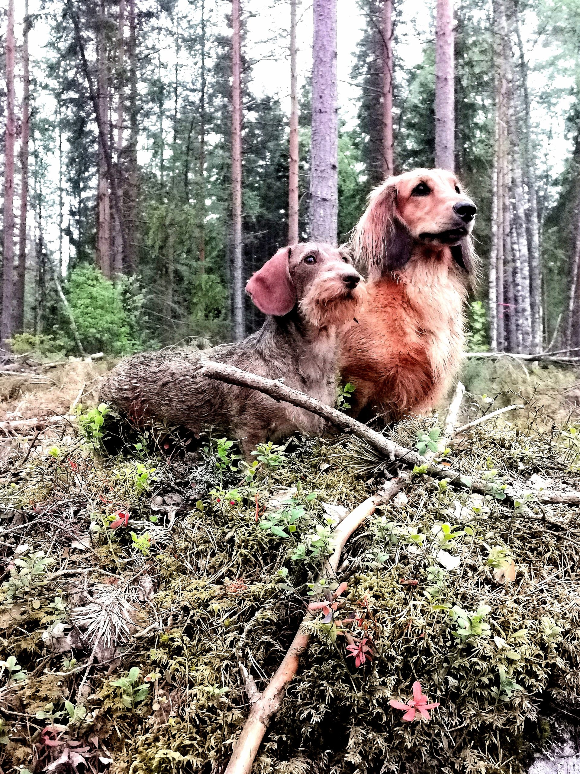 Pirkko on hyvin koulutettu ja liikummekin paljon metsässä koirat vapaana.